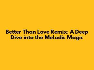 Hey music lovers! Ever stumbled upon a track that just hits different? A song that wraps you in its sonic embrace, making you feel things you didn't know you could? Well, if you haven't experienced it yet, let me introduce you to the magic of the "Better Than Love Remix." This isn't just a simple rework, guys; it's a complete reimagining, a sonic tapestry woven with threads of the original's essence and spun with a fresh, captivating energy. We're talking about a track that takes a great song and elevates it to another level entirely. In this article, we're diving headfirst into the world of the "Better Than Love Remix," exploring its nuances, its impact, and why it has earned its place in the playlists of music enthusiasts worldwide. Get ready to have your eardrums tickled and your musical horizons expanded!
