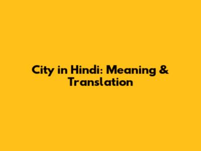 City In Hindi: Meaning & Translation