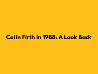 Looking Forward: The Legacy of Colin Firth's 1988