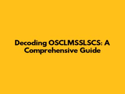 Decoding OSCLMSSLSCS: A Comprehensive Guide