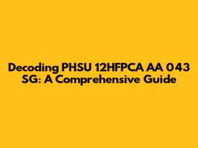Decoding PHSU 12HFPCA AA 043 SG: A Comprehensive Guide
