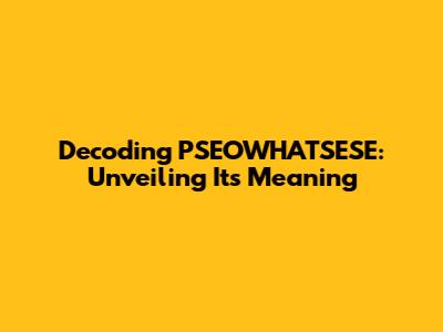 Decoding PSEOWHATSESE: Unveiling Its Meaning