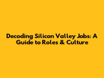 Decoding Silicon Valley Jobs: A Guide To Roles & Culture
