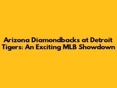 Diamondbacks Vs. Tigers: An Exciting MLB Showdown