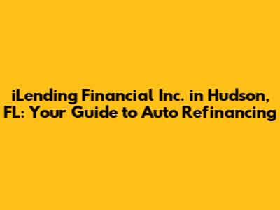 Hey guys! Are you looking for ways to save money and improve your financial situation? If you're a car owner in Hudson, Florida, you might want to explore the services offered by iLending Financial Inc. They specialize in auto refinancing, which could potentially lower your monthly payments and save you a significant amount of money over the life of your loan. In this article, we’ll dive deep into what iLending Financial does, the benefits of auto refinancing, and how you can get started.