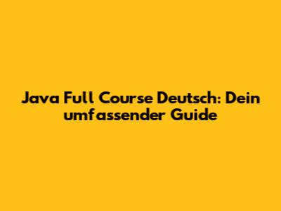 Java Full Course Deutsch: Dein Umfassender Guide