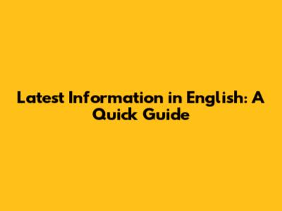Latest Information In English: A Quick Guide