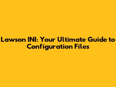 Lawson INI: Your Ultimate Guide To Configuration Files