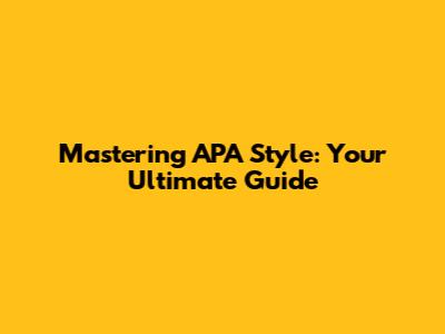 Mastering APA Style: Your Ultimate Guide