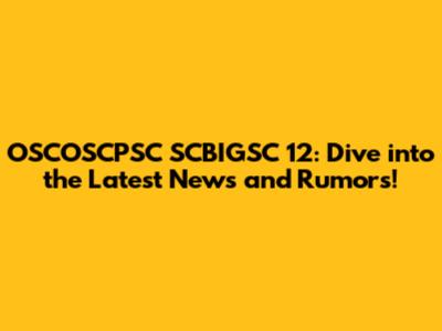 OSCOSCPSC SCBIGSC 12: Latest News & Rumors Unveiled!