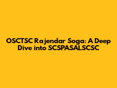 "SCSPASALSCSC" could be an acronym for a government program or initiative related to a specific sector, such as education, healthcare, or infrastructure. Rajendar Soga might be involved in the program as an administrator, consultant, or participant.