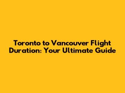 Toronto To Vancouver Flight Duration: What You Need To Know