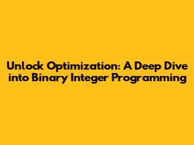 Unlock Optimization: A Deep Dive Into Binary Integer Programming