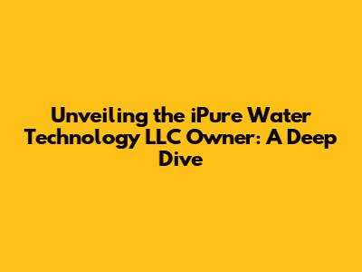 Unveiling The IPure Water Technology LLC Owner: A Deep Dive