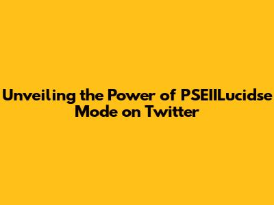 Unveiling The Power Of PSEIILucidse Mode On Twitter