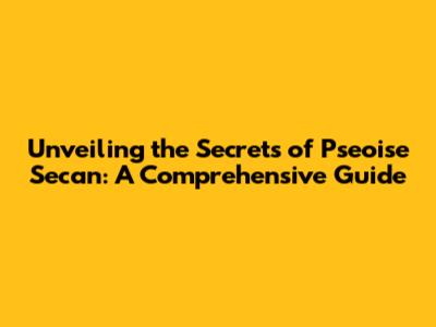 Unveiling The Secrets Of Pseoise Secan: A Comprehensive Guide