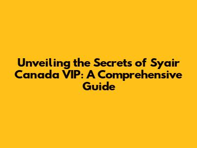 Unveiling The Secrets Of Syair Canada VIP: A Comprehensive Guide