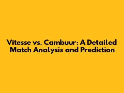 Vitesse Vs. Cambuur: Match Analysis & Predictions